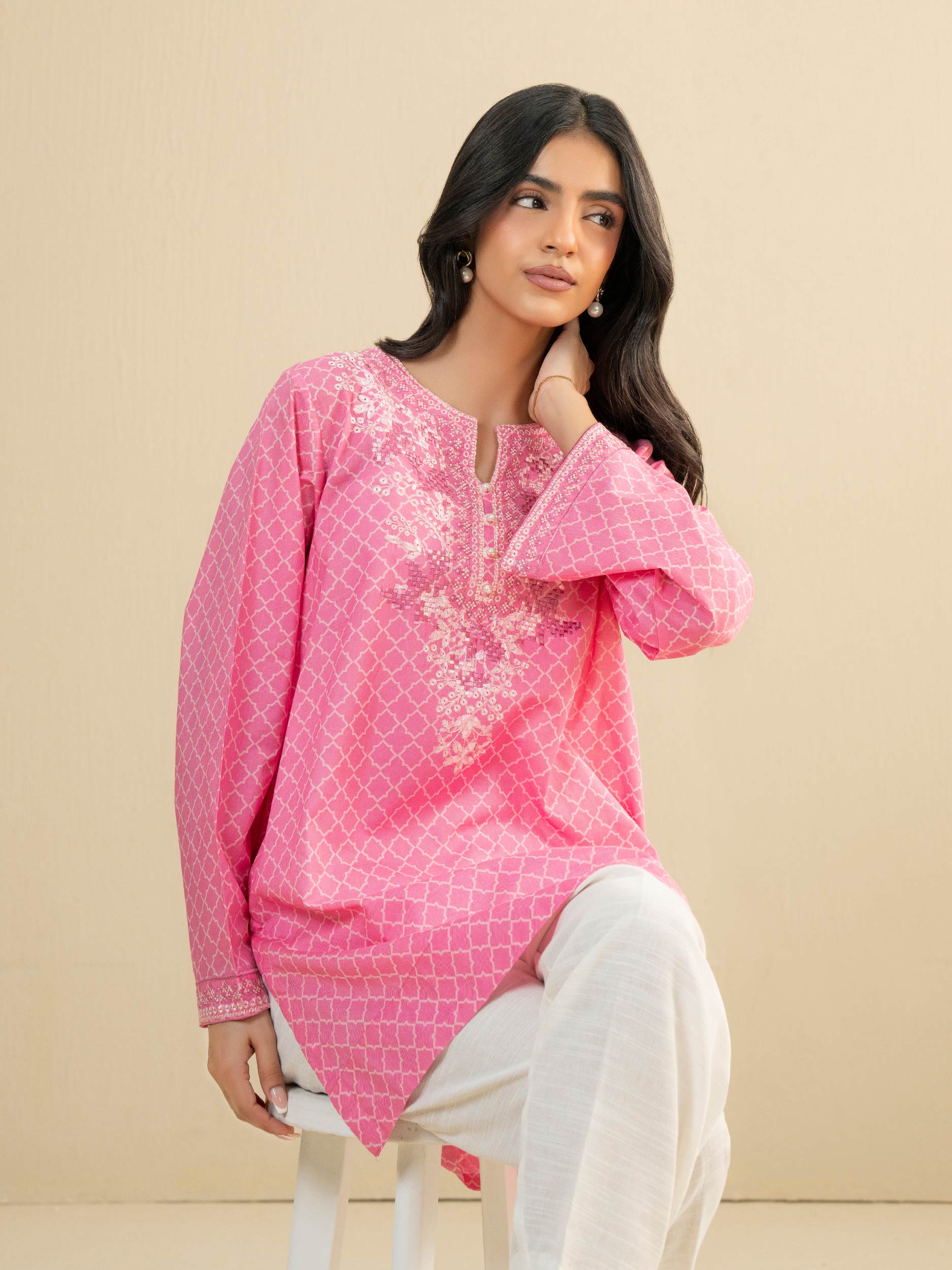 Cambric Kurti-Embroidered (Pret)