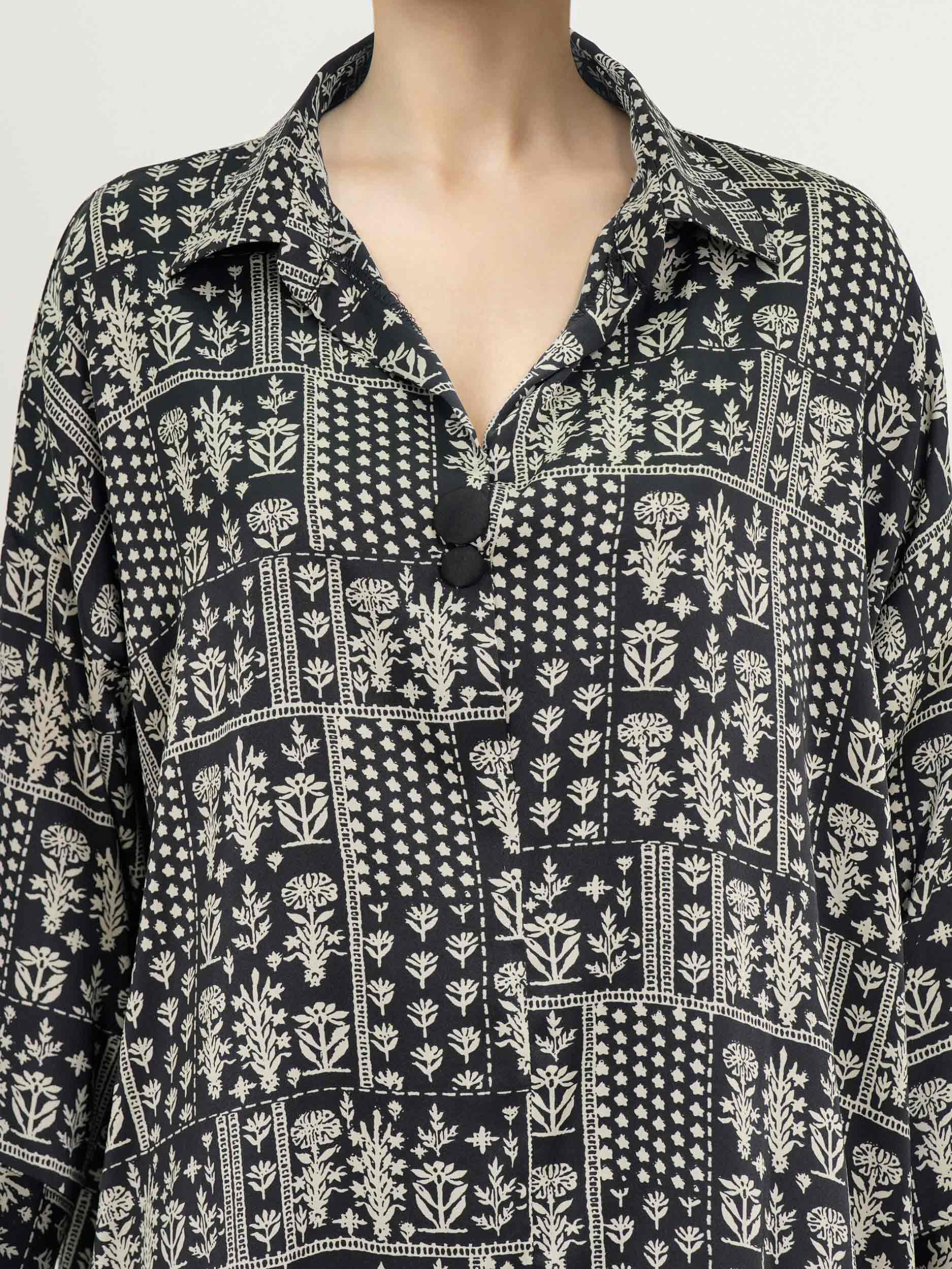 - Relaxed-fit printed button detailed collared neckline