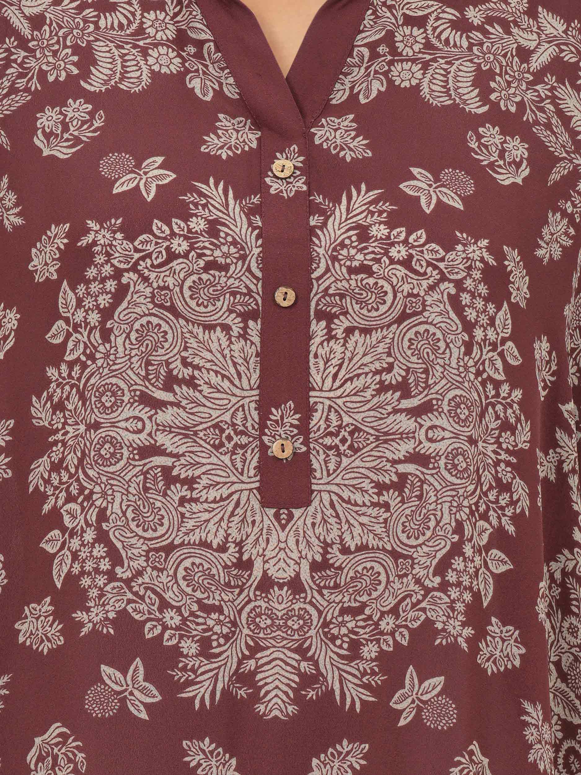 - Printed top with button detailed placket