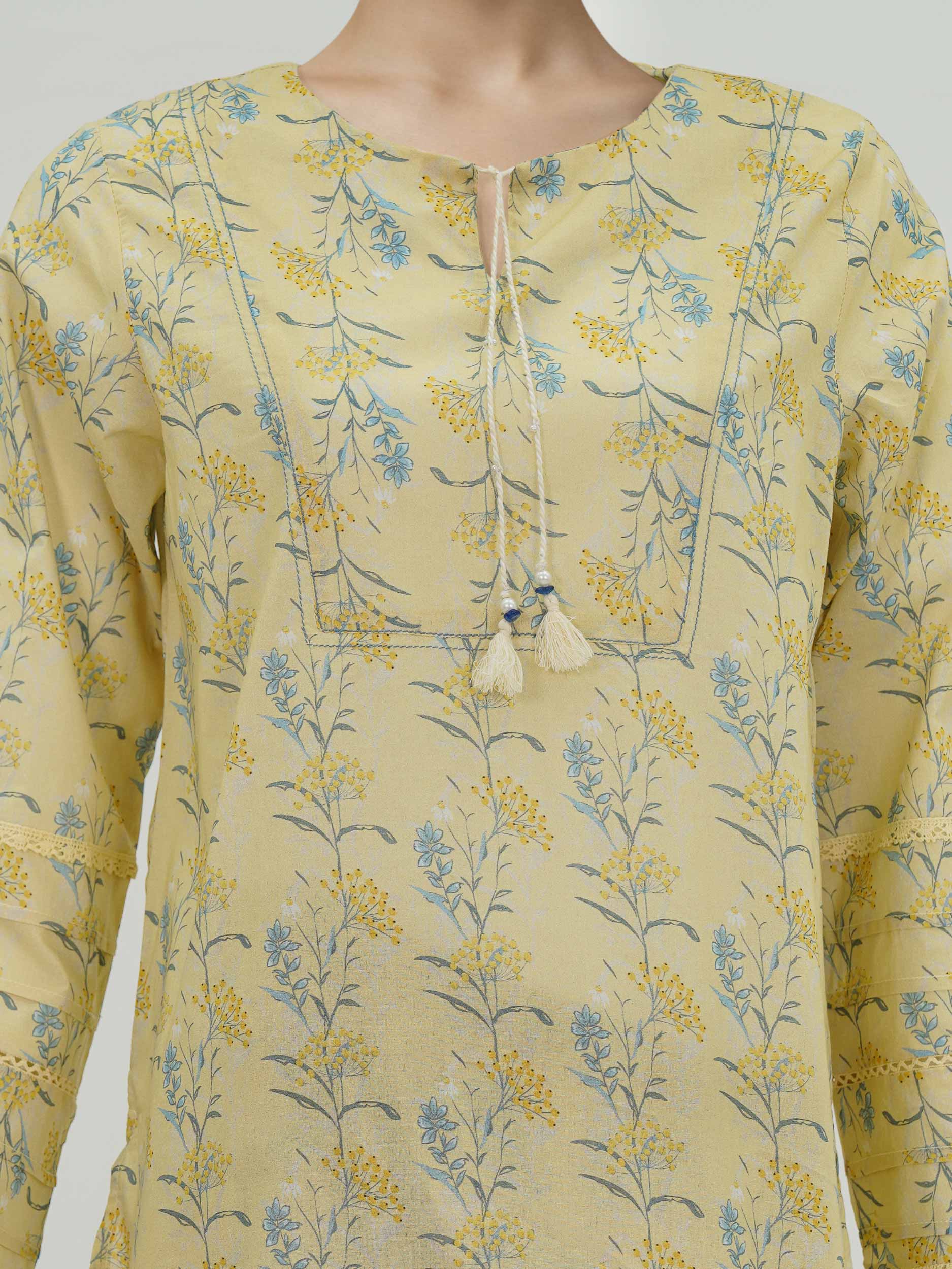 - Printed shalwar with a cross-slit hem and an elasticized waistband