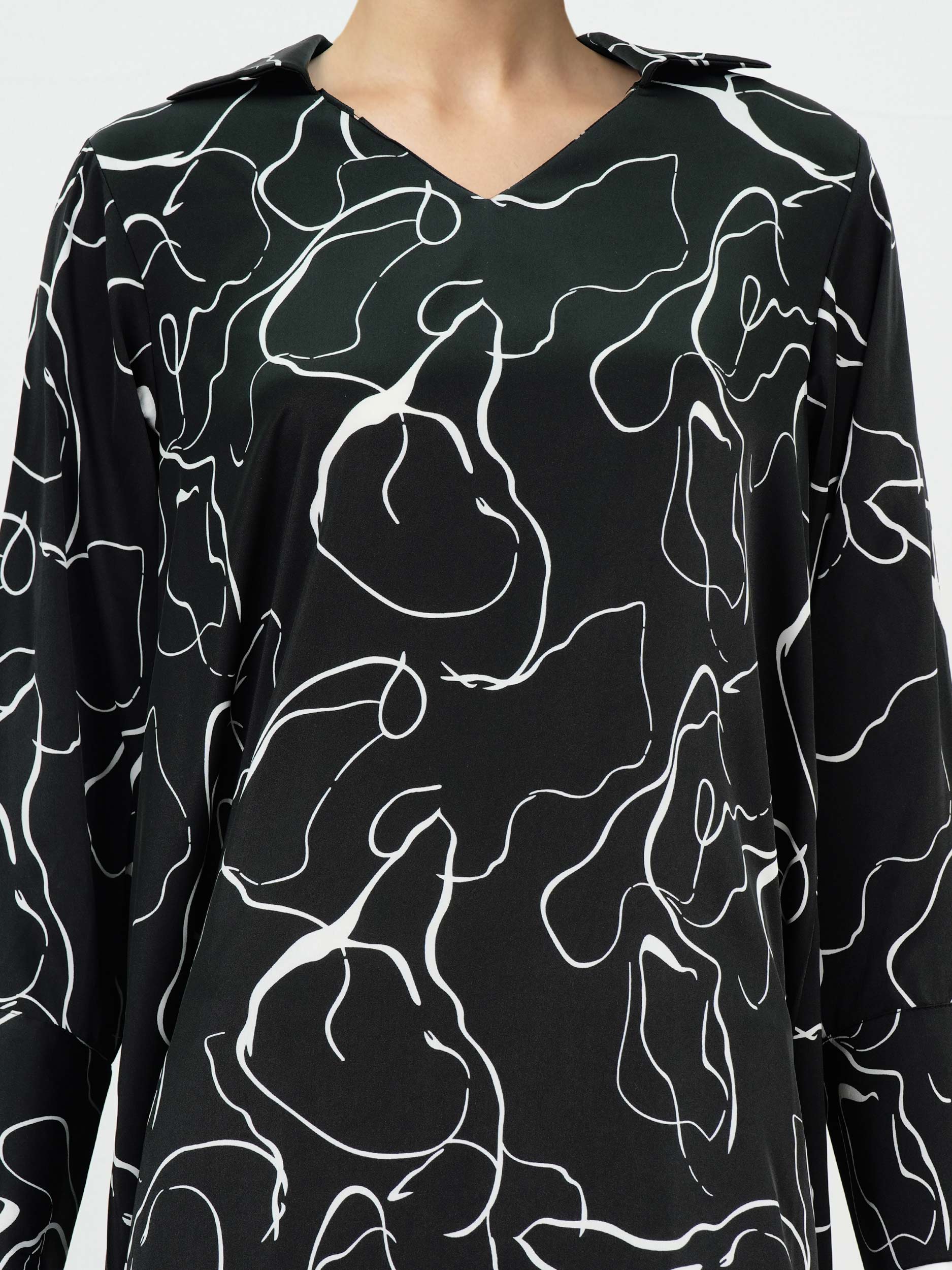 - Printed dress with a soft collar and button-detailed cuffed sleeves