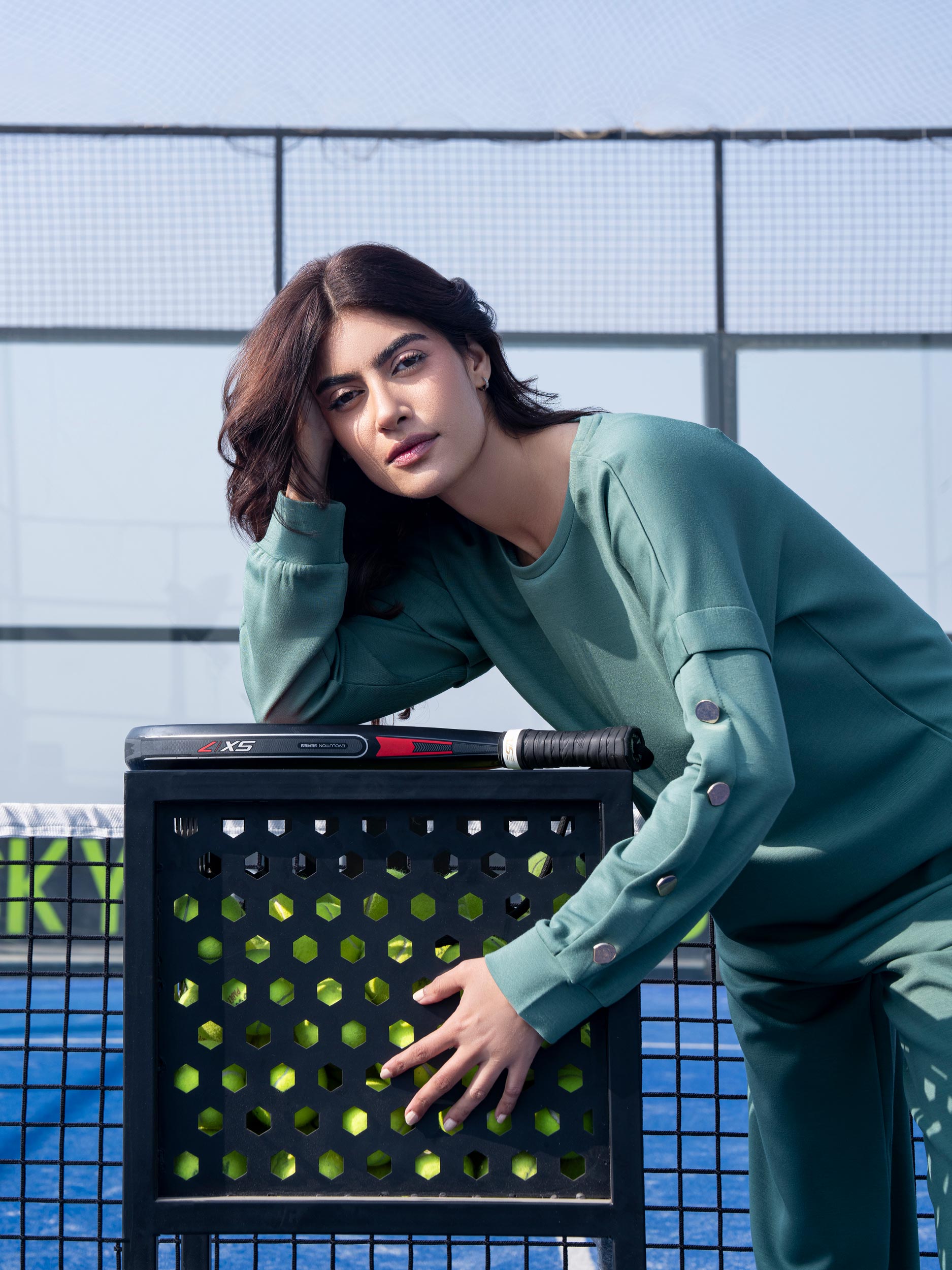 - Sweatshirt with a round neckline and button detailed sleeves